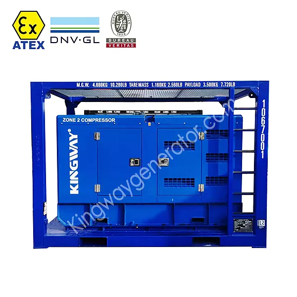 Dieselgetriebene Generatorsätze für Anwendungen im Gefahrenbereich 2,7-1 Skid-Rahmengehäuse mit DNV-Zertifizierung und 750CFM Explosionsgeschützter Luftkompressor